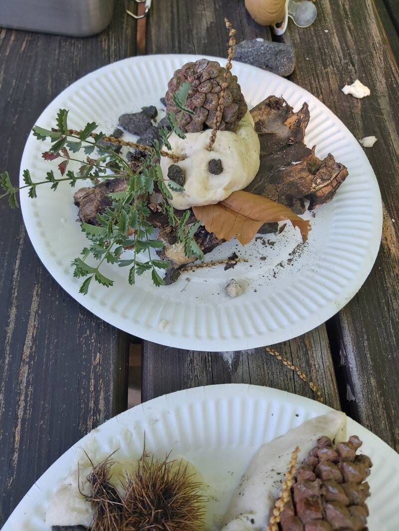 Neben den Herausforderungen des Waldes steht jede Woche ein Angebot wie mit Naturmaterial basteln, Waldkugelbahn, WaldXylophon, Rindenboote bauen, und vieles mehr auf dem Programm.